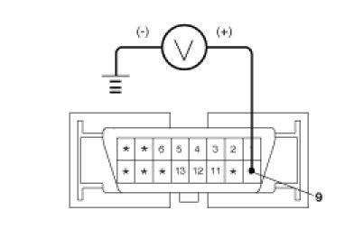 1. Measure the voltage between terminal 9 of the data link connector and body ground.