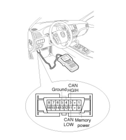 2. Connector the scan tool to the 16P data link connector located the driver's side kick panel.