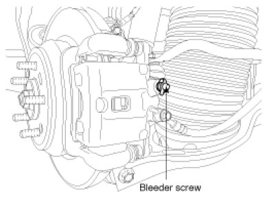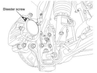 5. Pump the brake pedal several times, and then loosen the bleeder screw until fluid starts to run out without bubbles. Then close the bleeder screw.