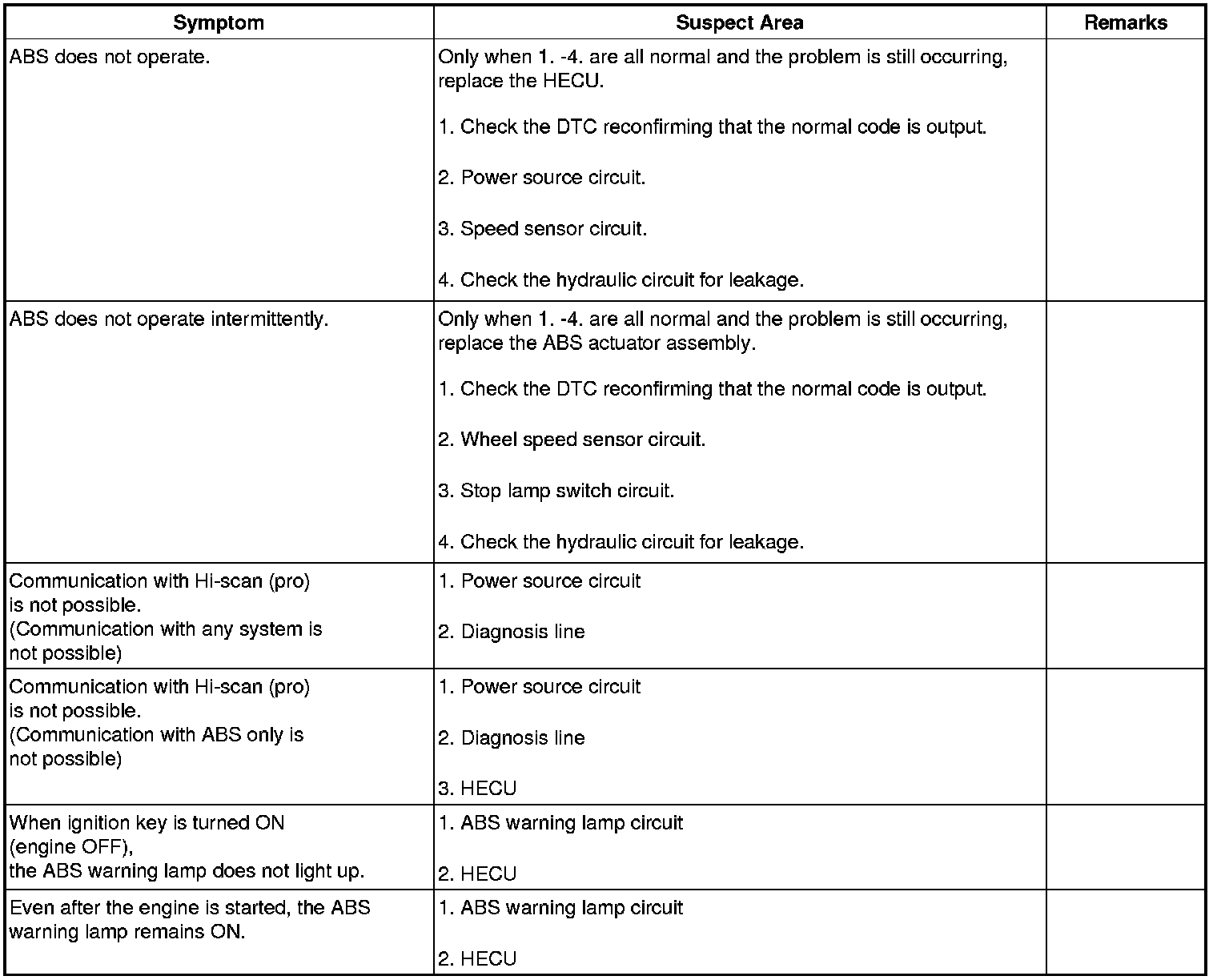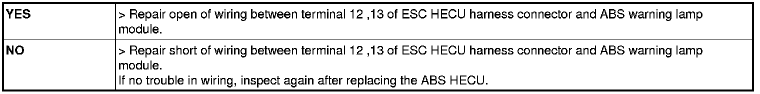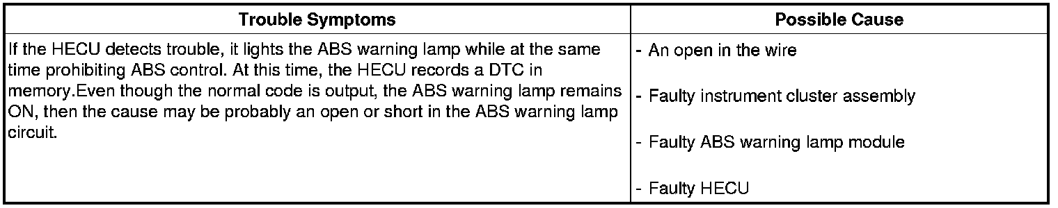1. ABS warning lamp turns on when ABS is fail.