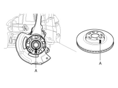 4. When installing brake disc, runout peak point markings(A) on disc and hub must be as close as possible(within 72° range).
