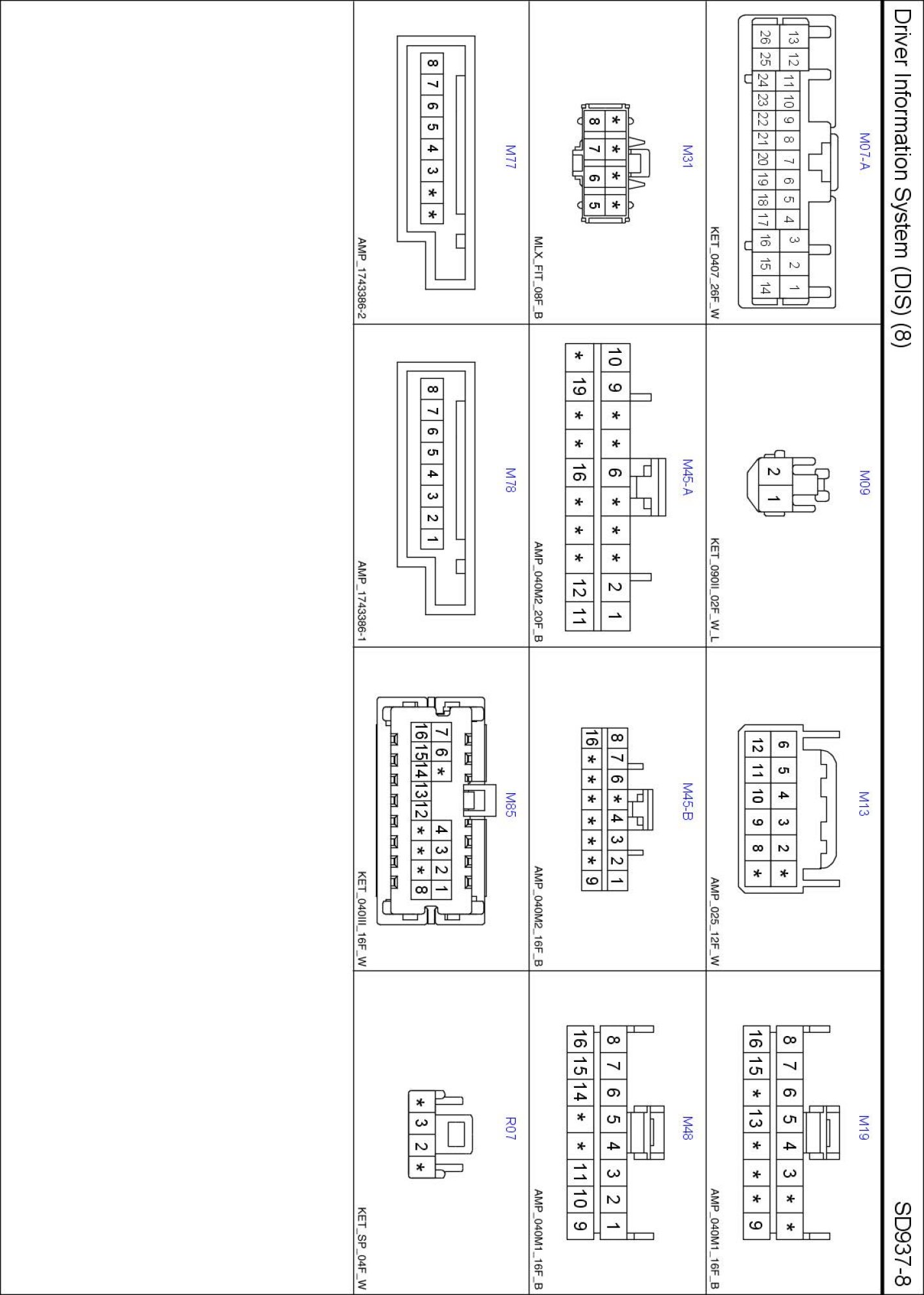 Driver Information System (DIS) (8) Connector Pin Outs: