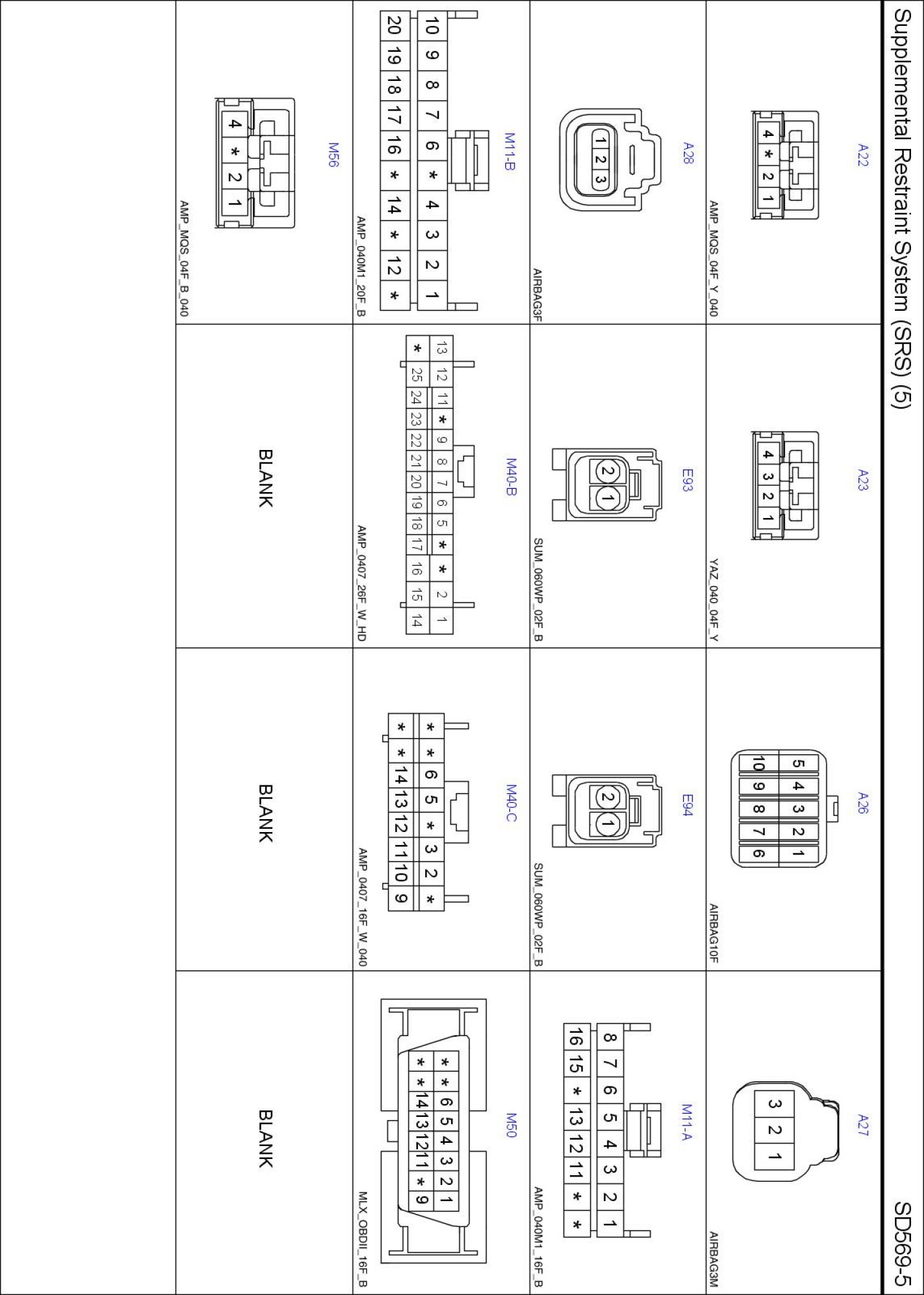 Supplemental Restraint System (SRS) (5) Connector Pin Outs: