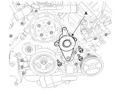 11. Remove the drive belt tensioner (A).