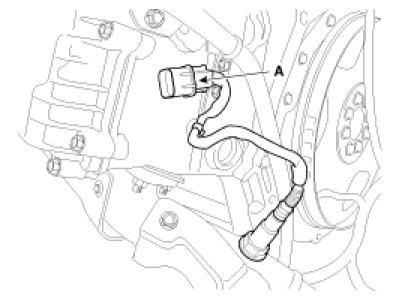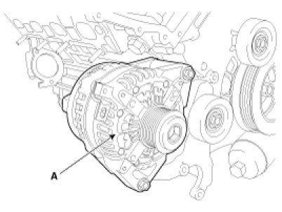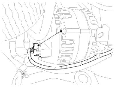 (2) Disconnect the alternator connector (A).