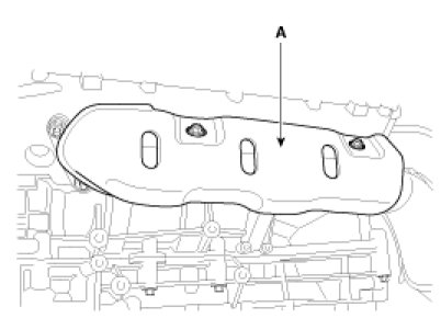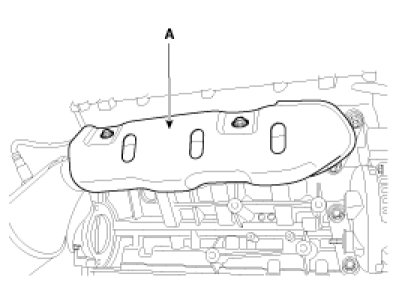 15. Remove the exhaust manifold heat protector (A).