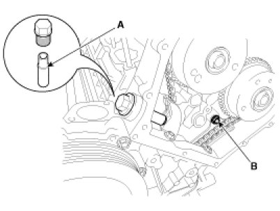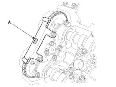 34. Remove the timing chain tensioner (A).