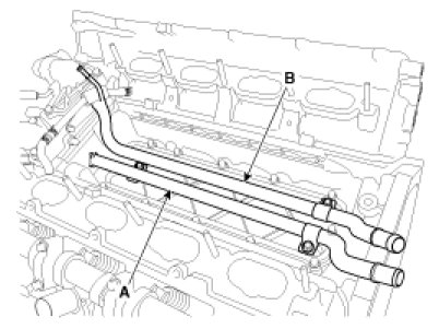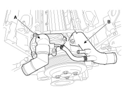 6. Disconnect the radiator upper hose (A) and lower hose (B).