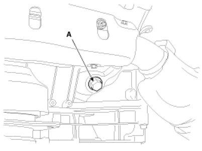 Remove the drain plug (A) and drain the engine coolant.