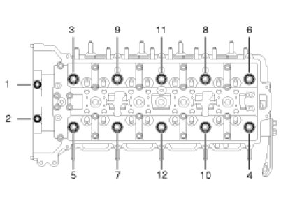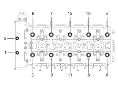 (1) Uniformly loosen and remove the cylinder head bolts, in several passes, in the sequence shown.