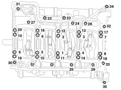(1) Install and uniformly tighten the lower crankcase assembly bolts, in several passes, in the sequence shown.