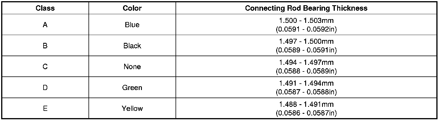 (10) If the plastigage shows the clearance is still incorrect, try the next larger or smaller bearing (the color listed above or below that one), and check clearance again.