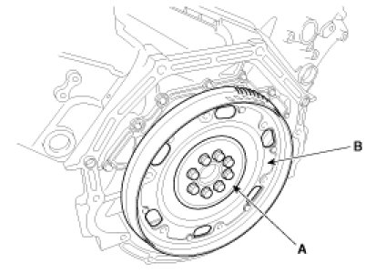 - The piston front mark (A) and the connecting rod front mark (B) must face the timing chain side of the engine.