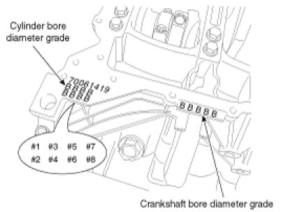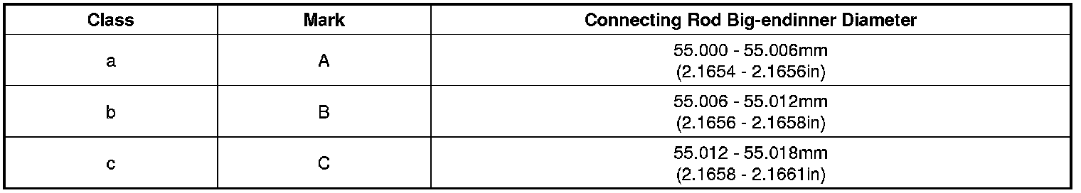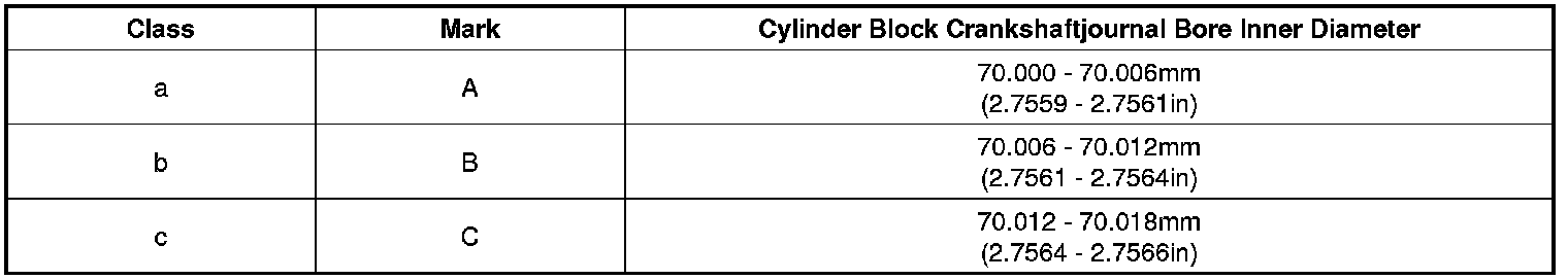 If the proper clearance cannot be obtained by using the appropriate larger or smaller bearings, replace the crankshaft and start over.