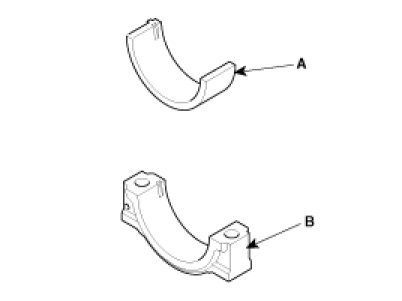 4. Install the main bearings (A) (No.1,2,4,5 journal) and the center bearings (B) (No.3 journal).