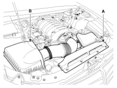 5. Remove the air duct (A), and the air cleaner assembly (B).