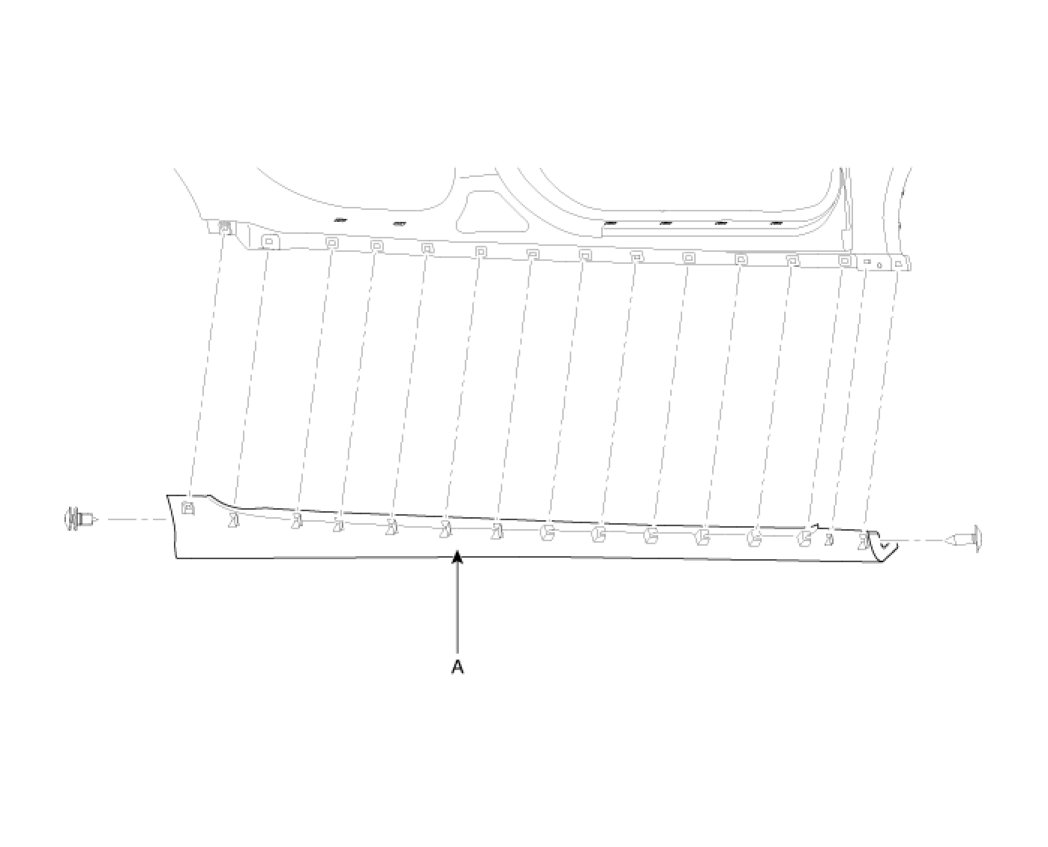 2. Using a screwdriver or remover, remove the side sill garnish (A).