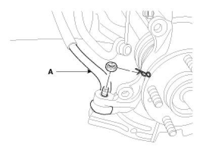 3. Remove the split pin and castle nut and then disconnect the tie-rod end (A) from the front knuckle.