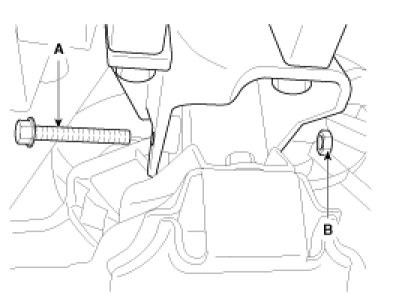 6. Loosen the bolt (A) & nut (B) and then remove the front roll stopper.
