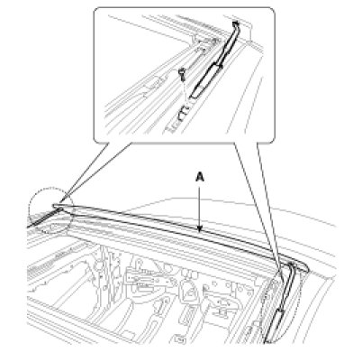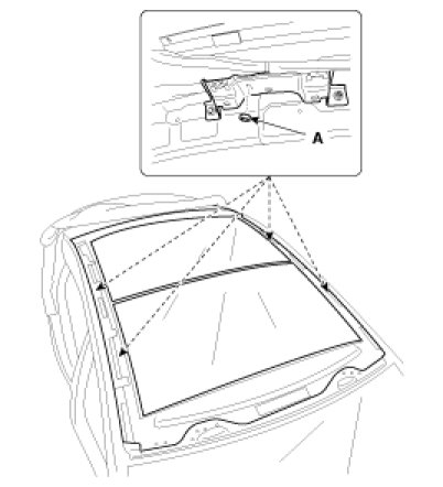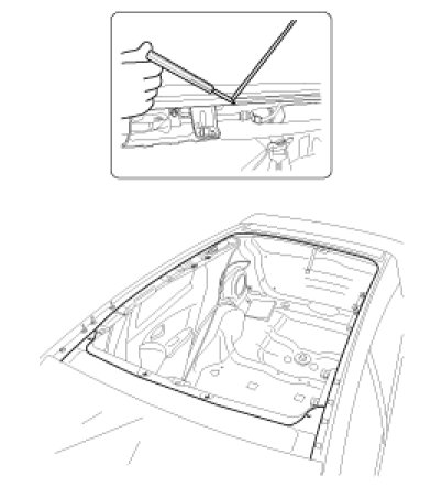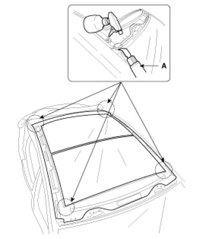 10. Open the space between chassis and sunroof using flathead screwdriver, and then cut the sealant of edge using a tool (09816-2P130) (A).