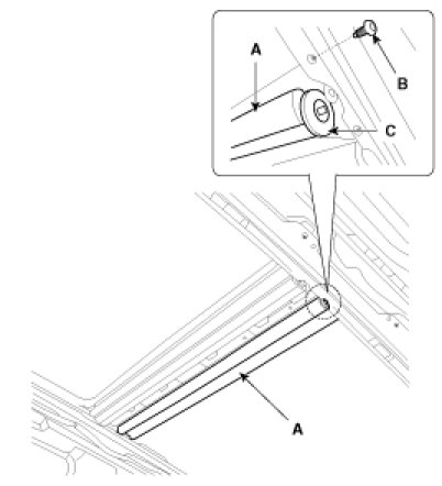 - When you remove it, Be care that an edge (C) is dashed against the frame of vehicle be careful the roll blind has the tension.