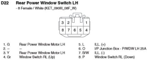 D22 Rear Power Window Switch LH: