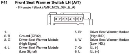 F41 Front Seat Warmer Switch LH (A/T):