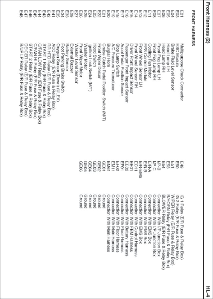 Front Harness Index: