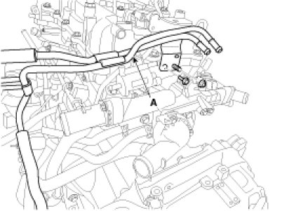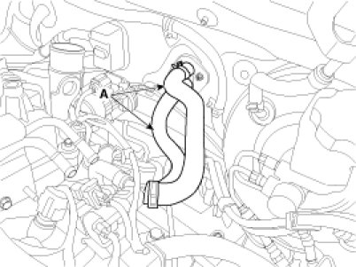 18. Connect the throttle body coolant hoses (A) and the oil cooler coolant hoses (A).