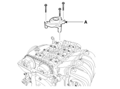 When installing the CVVT assembly bolt, prevent the camshaft from rotating by using a wrench at position A.