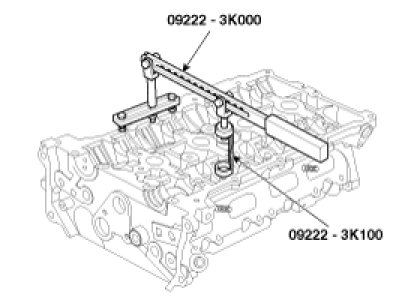 (3) Using the SST(09222-3K000, 09222-3K100), compress the spring and install the retainer locks. After installing the valves, ensure that the retainer locks are correctly in place before releasing the valve spring compressor.