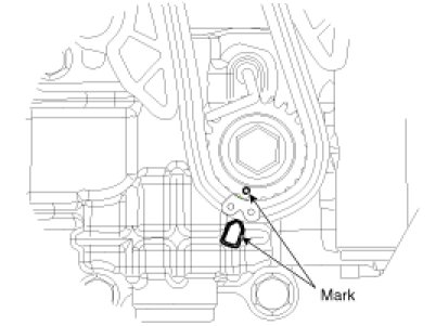 The timing marks of balance shaft & oil pump module sprocket and crankshaft sprocket should be matched with the timing marks (color link) of balance shaft chain.