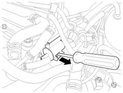 3. Disconnect the vapor hoses (B) from the purge control solenoid valve.
