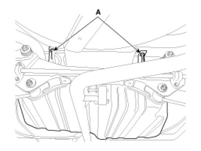 8. Remove the fuel tank from the vehicle after removing the fuel tank band installation nut (A).