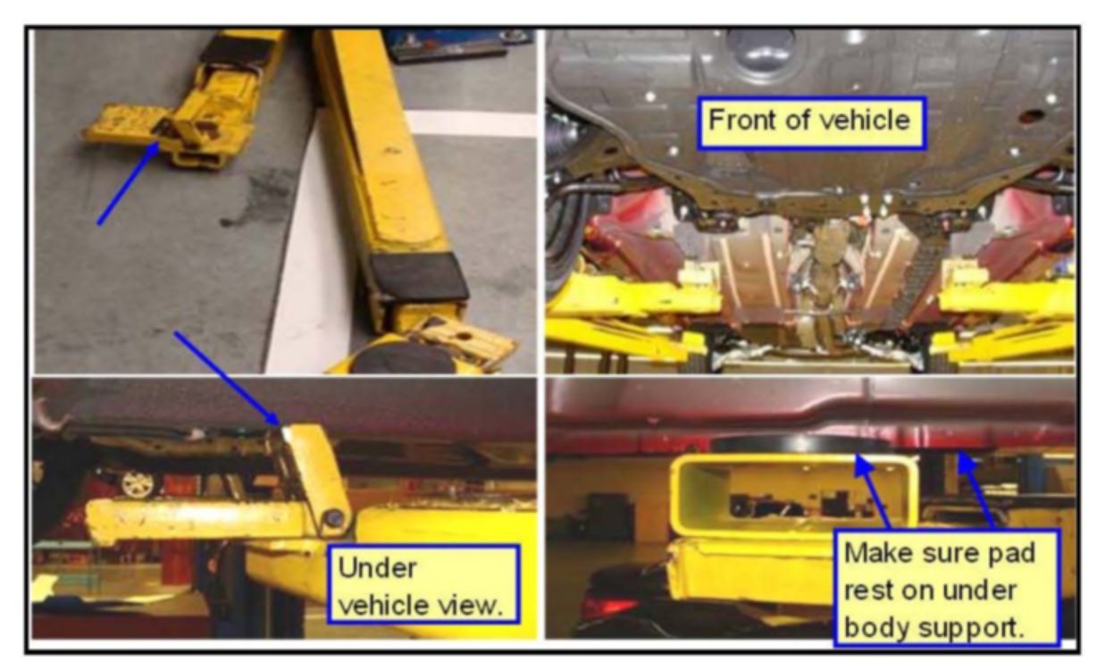 ^ Lifting points should not contact any exterior body parts such as the rocker panel.