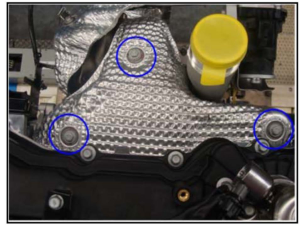 24. Tighten the (3) 10 mm heat shield bolts to 87 lb-in (1.0 kgf.m).