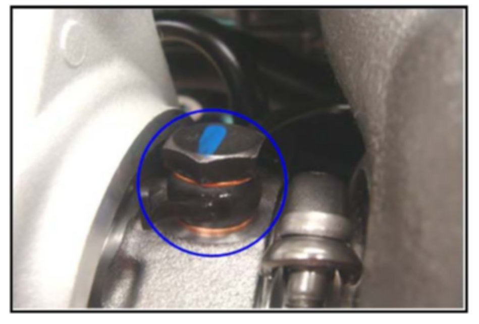 7. Remove the (1) 17 mm banjo bolt and (2) copper sealing washers.