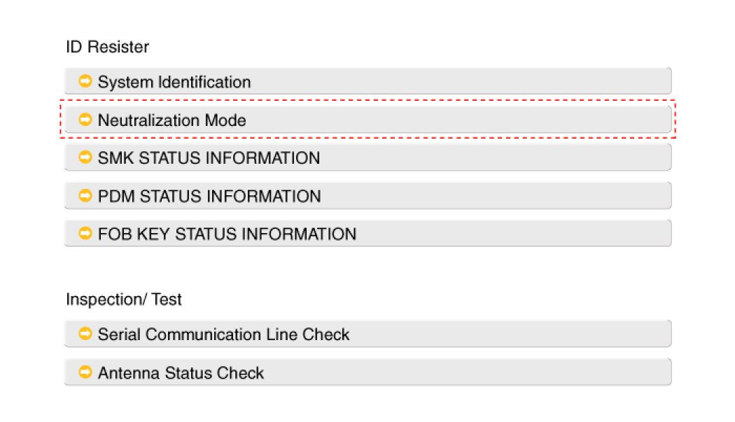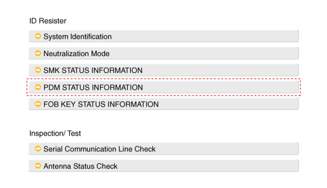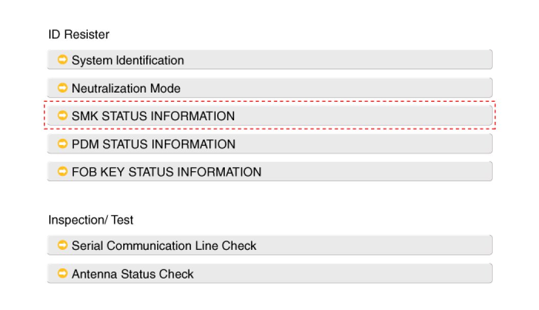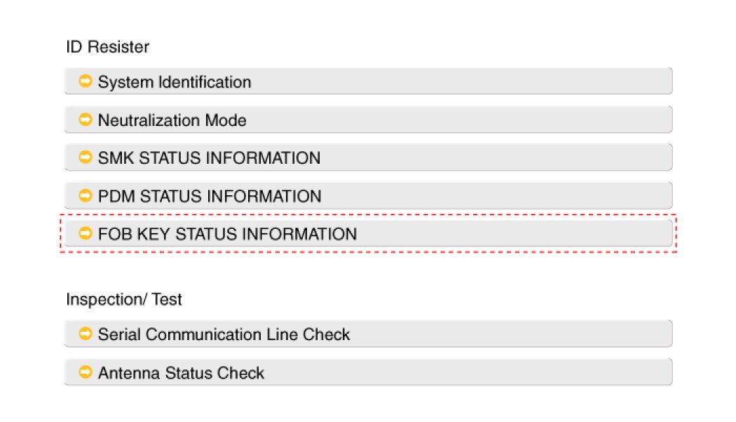 2. After IG ON, select the "FOB KEY STATUS INFO".