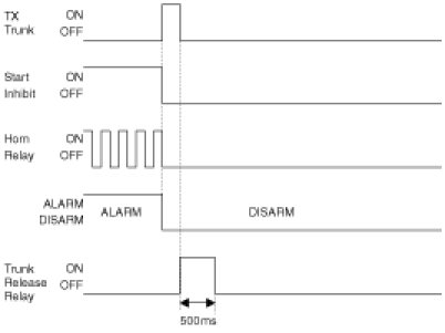 When the system is set off, the alarm (horn) sounds and the hazard lamp flash for about two minutes or until the system is disarmed by unlocking the transmitter.