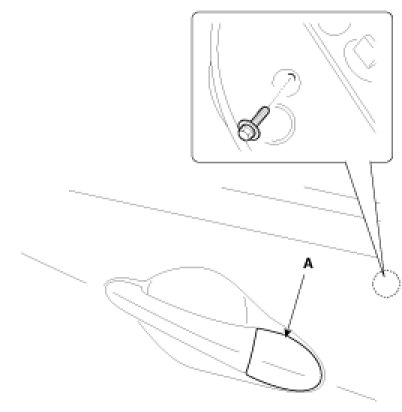 1. After loosening the mounting bolt, then remove the outside handle cover (A).