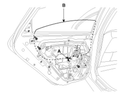 3. After loosening the mounting screws, then remove the power window motor (B).