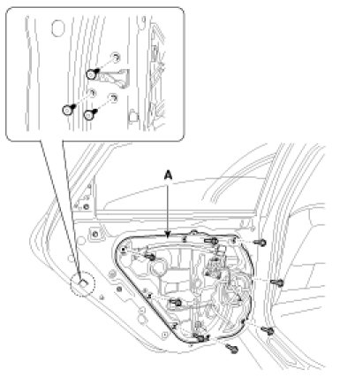 3. After loosening the mounting screws, then remove the rear door trim (A).