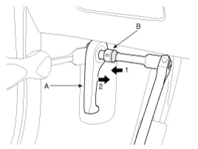 1. Using a screwdriver (A), lift the socket clips (B) up slightly on both ends of the lifter (D), and then remove the lifter from the bracket (C).