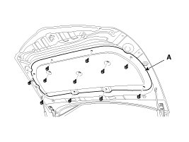 1. Detach the clips, then remove the hood seal weatherstrip (A).