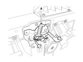 2. After loosening the mounting bolt and clips, then remove hood latch cover (A).
