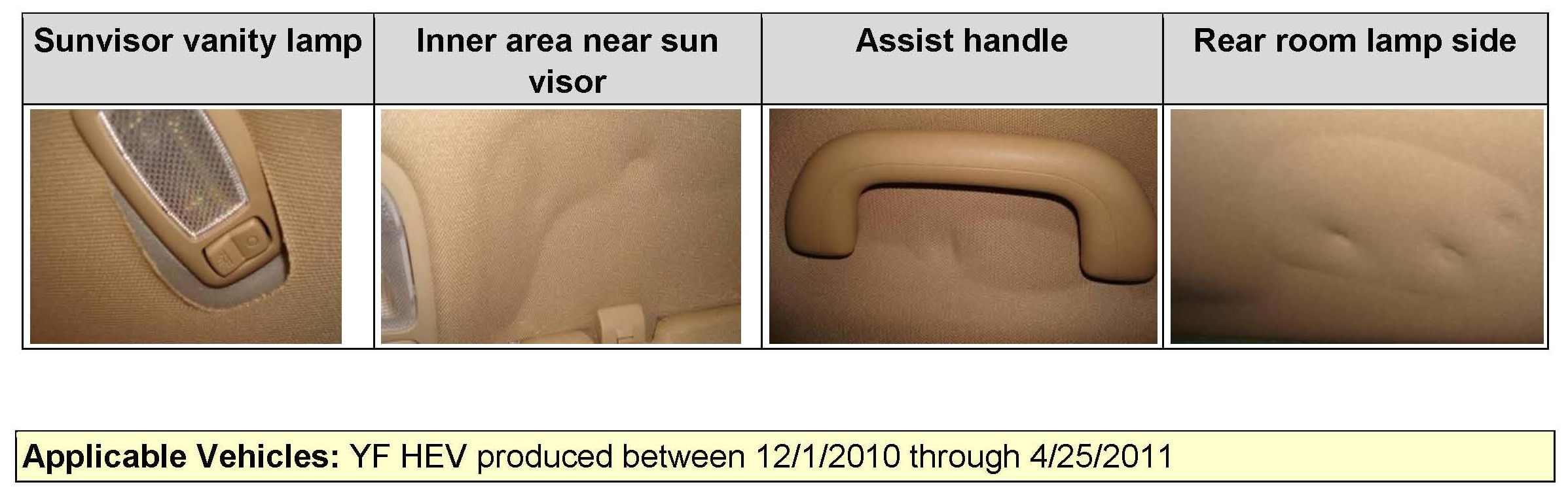 This bulletin describes the procedure to inspect the headliner to find if air pockets exist between the headliner material and headliner backing. If air pockets exist, replace the headliner.