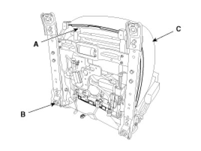 5. After loosening the mounting bolts, then disconnect the seat back frame (A) and seat cushion frame (B).