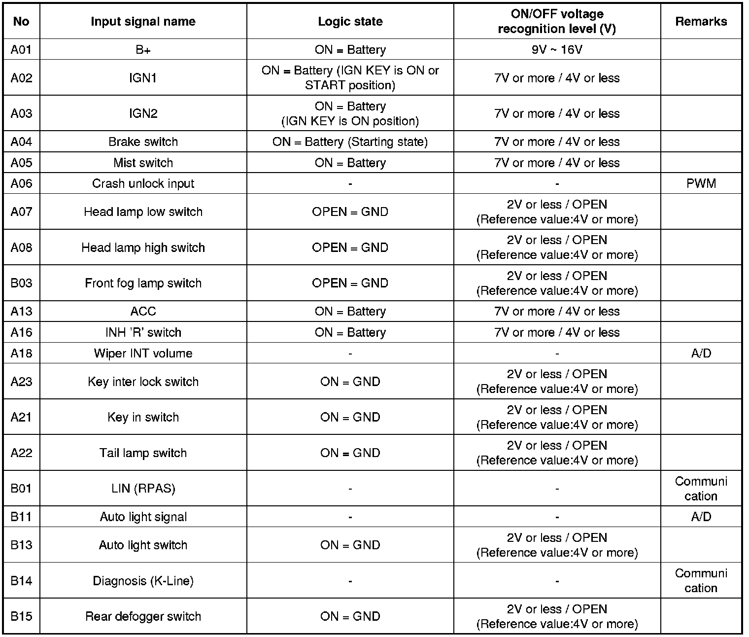 Input Signal SPEC