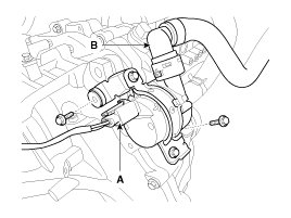 5. Disconnect the connector (A) and then remove the heater hose pump (B).