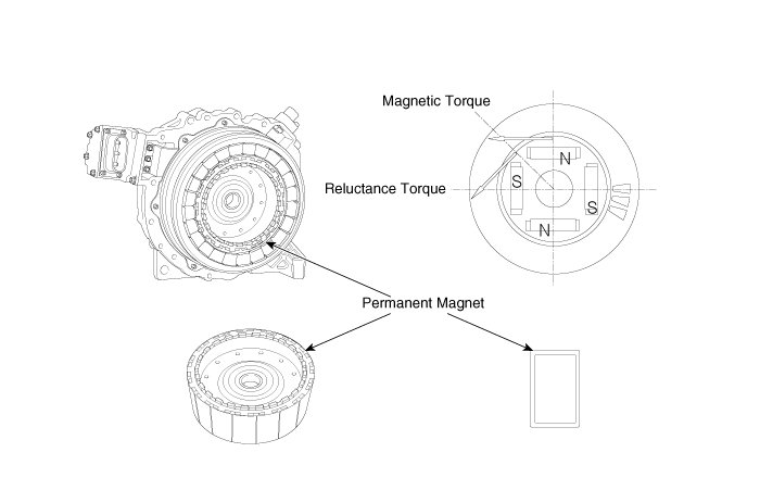 The operating principal of the electric motor is based on the torque generated by the interaction of the electric magnet in the stator and the interior magnet embedded in the rotor.